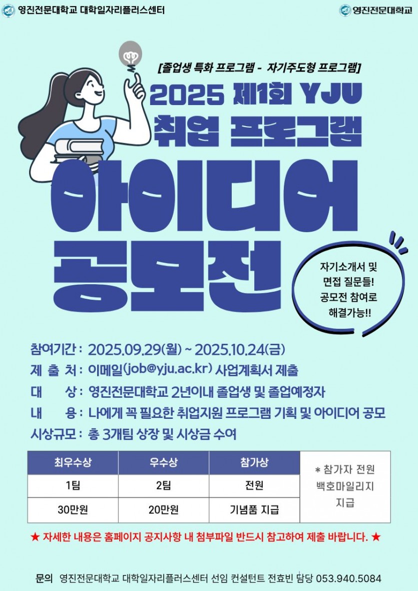 [졸업생특화프로그램] 2025 제1회 YJU 취업 프로그램 아이디어 공모전 개최 안내(+접수 연장 및 일정 수정)