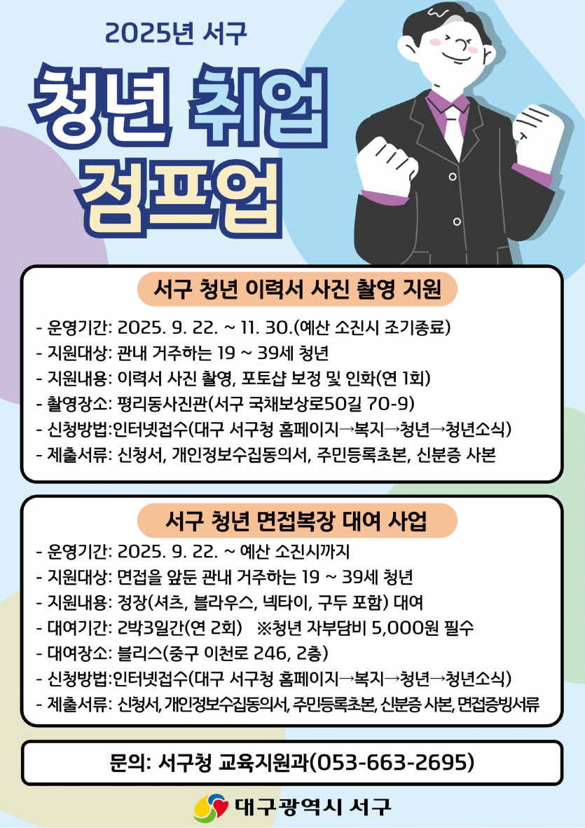 2025년 서구 청년 취업 점프업 사업 운영(이력서 사진 촬영 지원, 면접복장 대여 사업)