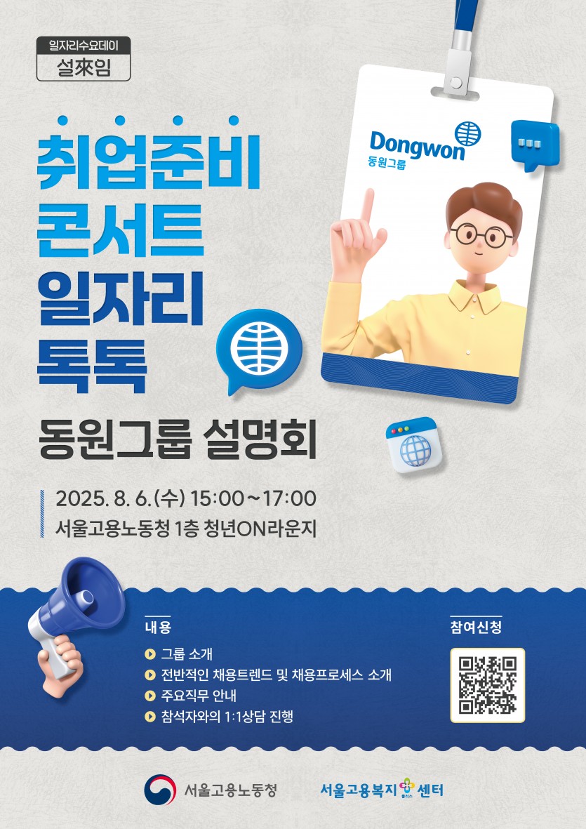 서울고용노동청과 함께하는 취업준비콘서트_일자리톡톡(동원그룹) 안내
